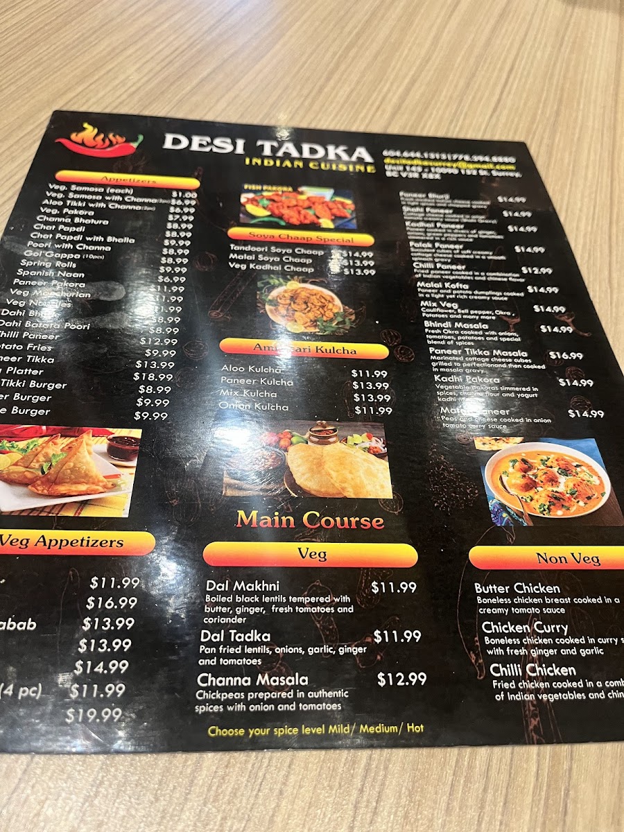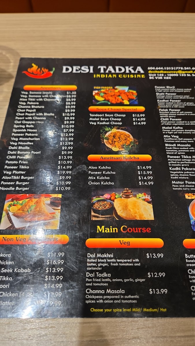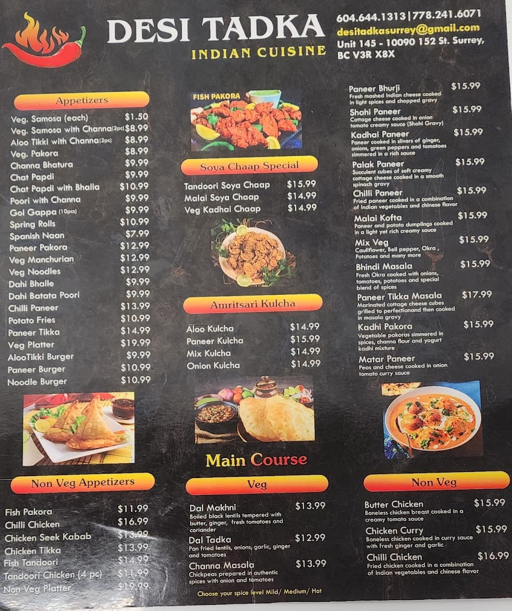 Welcome to Desi Tadka Indian Cuisine, a hidden gem located in Surrey, BC, where authentic Indian flavors come alive! The menu showcases a delightful array of dishes that reflect the rich culinary traditions of India.