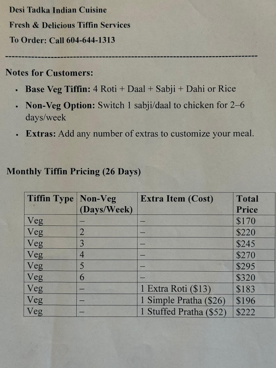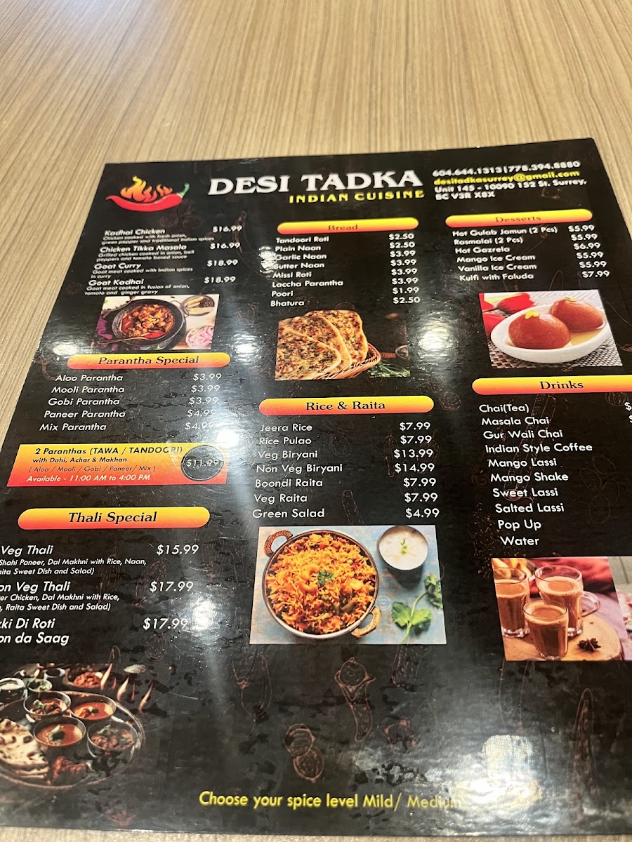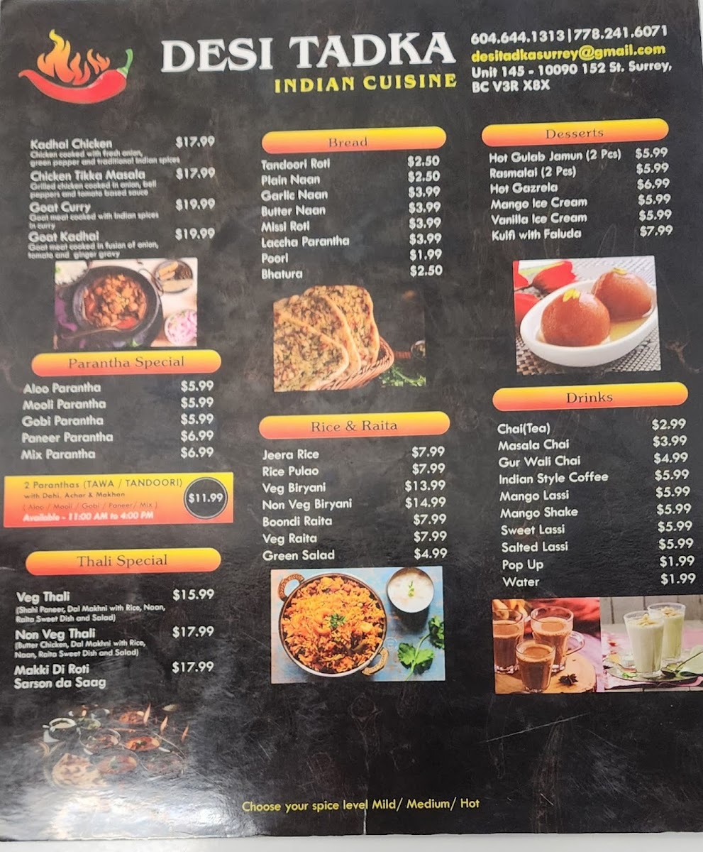 Desi Tadka Indian Cuisine Menu